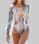 - Long sleeves with fringe: Extended cascading fringe detailing